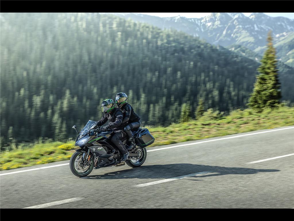 The Ninja 1100SX takes sport riding enjoyment to the next level, with a larger-displacement engine and improved KQS. Sporty handling, supersport-style chassis components and dynamic Ninja styling from its predecessor are maintained, with the superbly balanced engine-chassis package contributing to street-riding excitement in a wide range of situations.