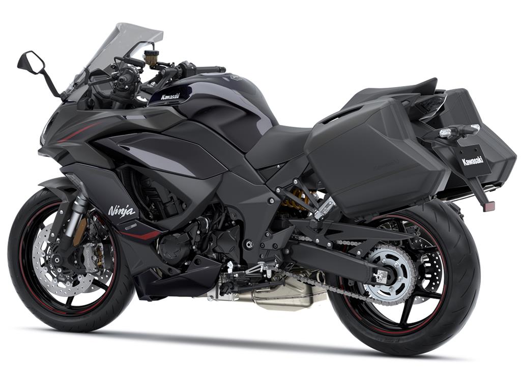 Styling that highlights the Ninja 1100SX’s Ninja family image and sport riding potential features streamlined looking fairings and a single-sided muffler.