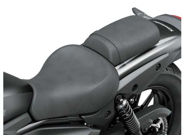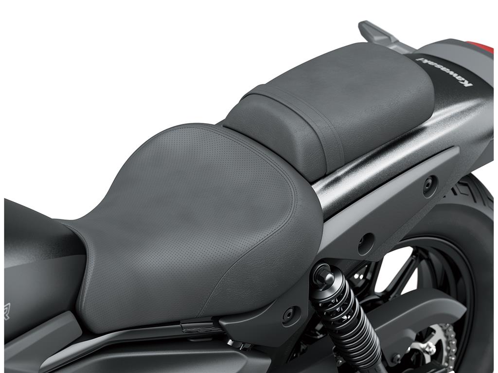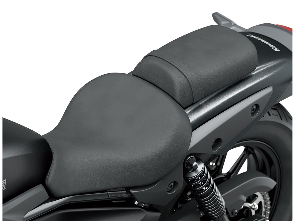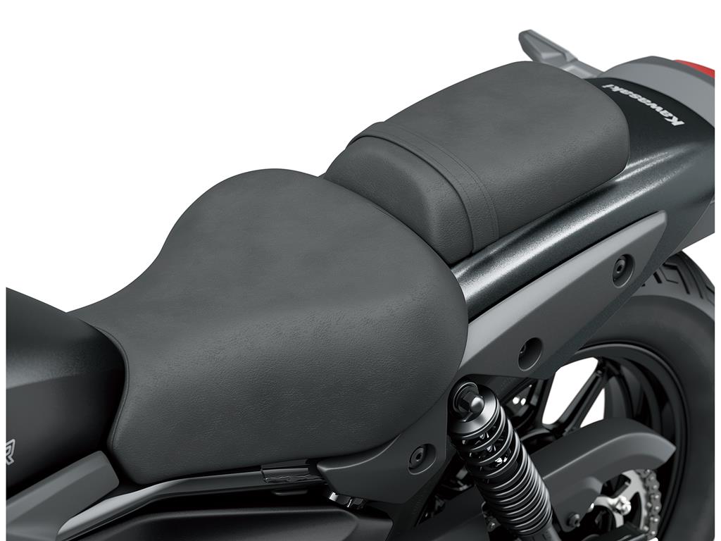 At 735 mm, the Eliminator’s seat height is the lowest of Kawasaki’s 250-500cc on-road models, contributing to a reassuring reach to the ground. Accessory High and Low seats enable a wide range of riders to enjoy the Eliminator with confidence and comfort.