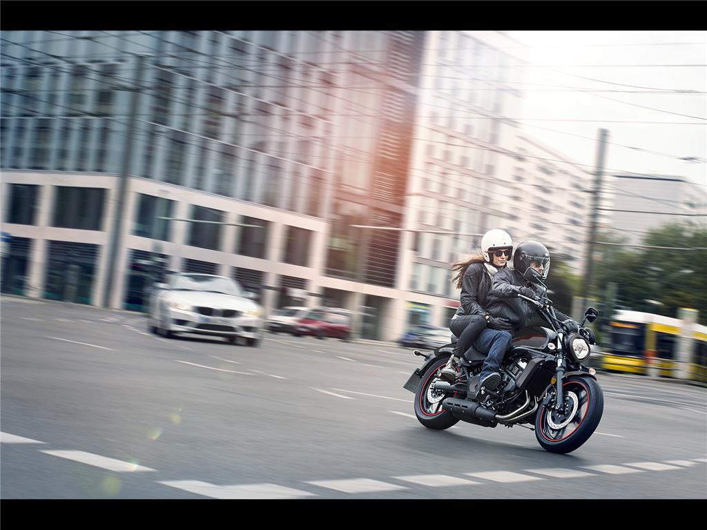 Liquid-cooled, DOHC, 8-valve 649 cm3 Parallel Twin with fuel injection delivers smooth, responsive performance, especially in the low and medium rpm ranges. The engine was tuned for rider-friendly power characteristics that will inspire confidence in new riders. The Vulcan S offers smooth starts from a standstill, smooth acceleration, and a satisfying pull when accelerating. The strong acceleration facilitates highway merging and passing.