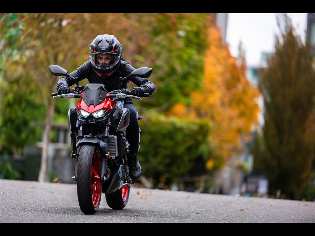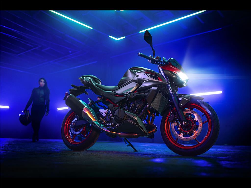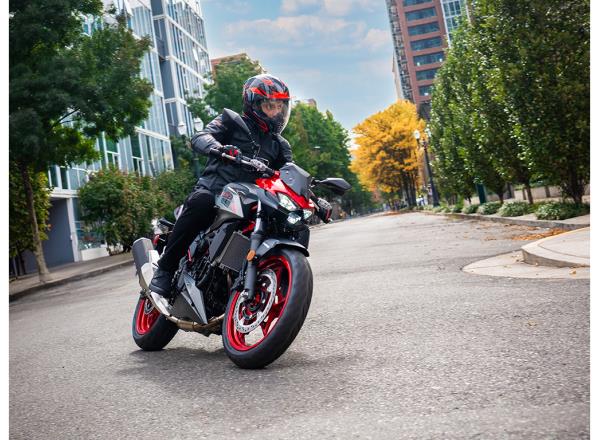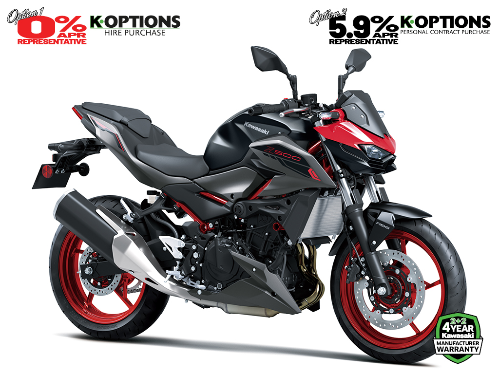 All eyes are on you when riding the all-new Z500 ABS supernaked. With distinctive bodywork and a powerful 451cc engine, this aggressively styled streetfighter is for those who are not afraid to be seen. UK Colour Options: Candy Persimmon Red / Metallic Flat Spark Black / Metallic Matte Graphenesteel Gray – £6049 Metallic Moondust Gray / Metallic Spark Black – £6049
