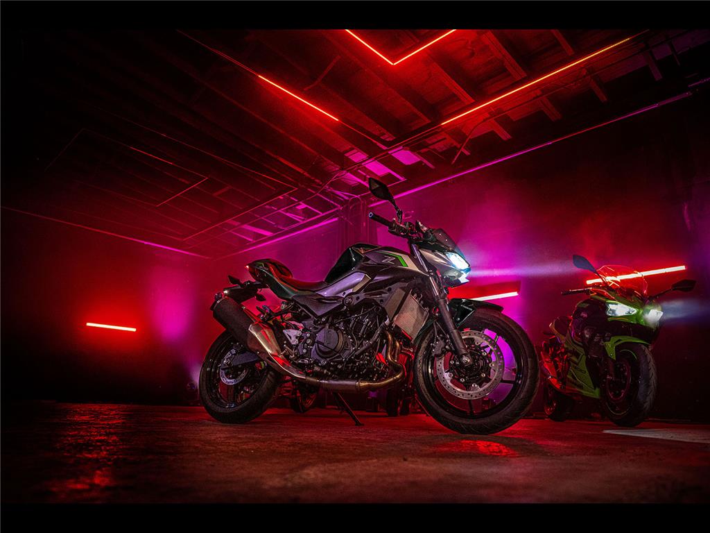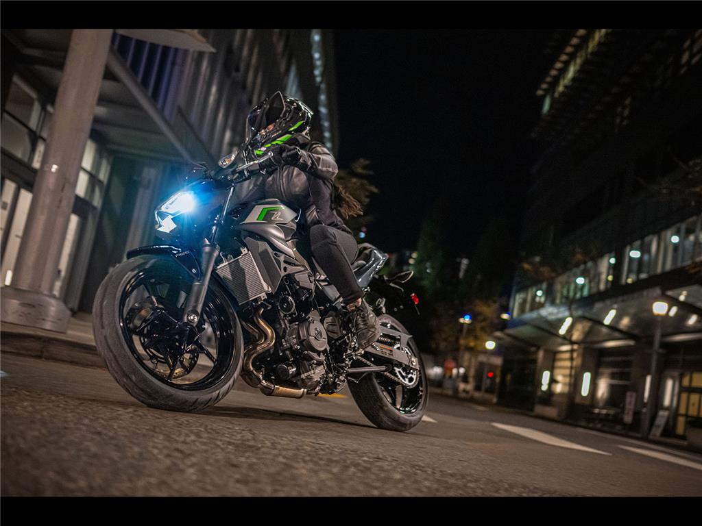 The new Z500 has a sharp, aggressive style and retains the large-volume design of other bikes in the Z series to create an aggressive, agile, street-oriented look. Its muscular, athletic bodywork reflects its performance while forming a flowing design that appears to float above the engine. Like other models in the Z Series, sugomi design elements (crouching stance, lowpositioned head and upswept tail) give it a silhouette instantly recognisable as a Kawasaki Supernaked.