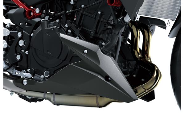 The Z500’s “face” is based around a newly designed triple headlight unit, enveloped by a sharp front cowl to give it an intense look.