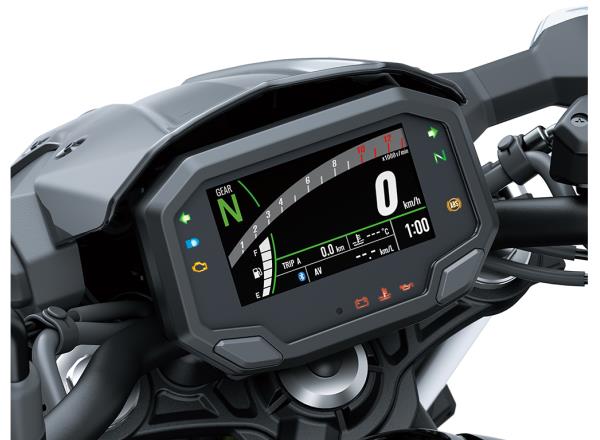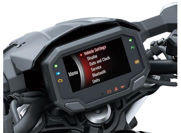 The new alldigital TFT colour instrumentation – a Kawasaki first in the 650cc class – gives the cockpit a high-tech, highgrade appearance. The new meter also offers additional features unavailable on the previous model.