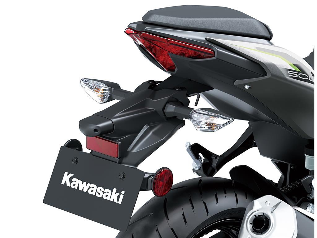 The Z500’s “face” is based around a newly designed triple headlight unit, enveloped by a sharp front cowl to give it an intense look.