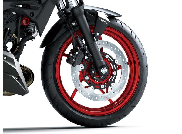 Measuring ø310 mm (the same disc size used on the Z1000), the Z500’s semi-floating front disc offers sure stopping power. ABS offers added reassurance when riding.