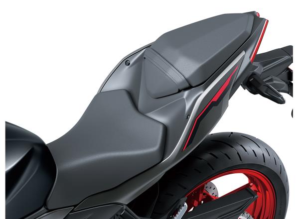 While seat height is 785 mm, the slim design of both the seat and the rear of the engine gives riders an unobstructed line for their feet to reach the ground. The seat’s flat shape offers ample padding in the front portion without sacrificing the comfortable reach to the ground, which helps riders enjoy the bike with confidence.