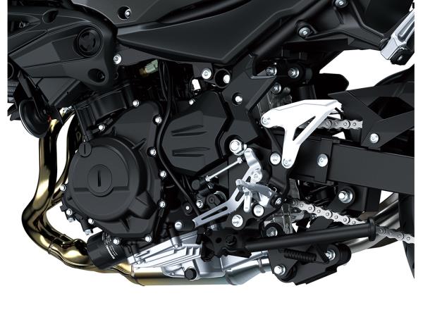 Ample power from the 451 cm3 engine is available through the entire rpm range to make it easy for riders to use, no matter what kind of riding they are doing, from low-end power for accelerating off the line in the city to top-end revs for riding on the highway. The engine in the new Z500 is up the task, no matter what it may be.