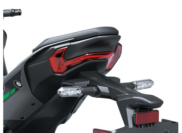 The advanced LED taillight features light-guiding technology to achieve a futuristic design with a cutting-edge, 3D appearance that highlights the Z900’s sharp, edgy styling while contributing to a high-grade look.