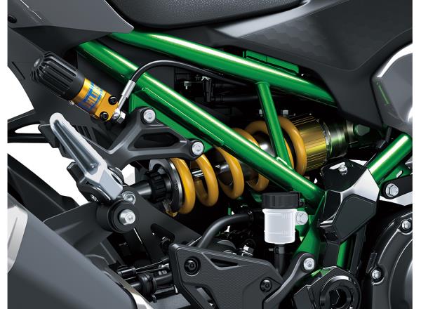 Key to the Z900’s agile handling is a chassis composed of lightweight components, including its trellis frame. Revised suspension settings for the new model allow riders to enjoy sport riding with more confidence.