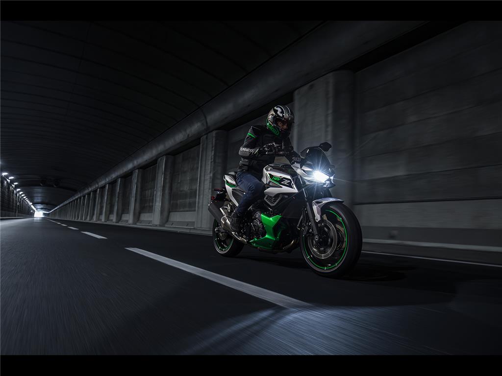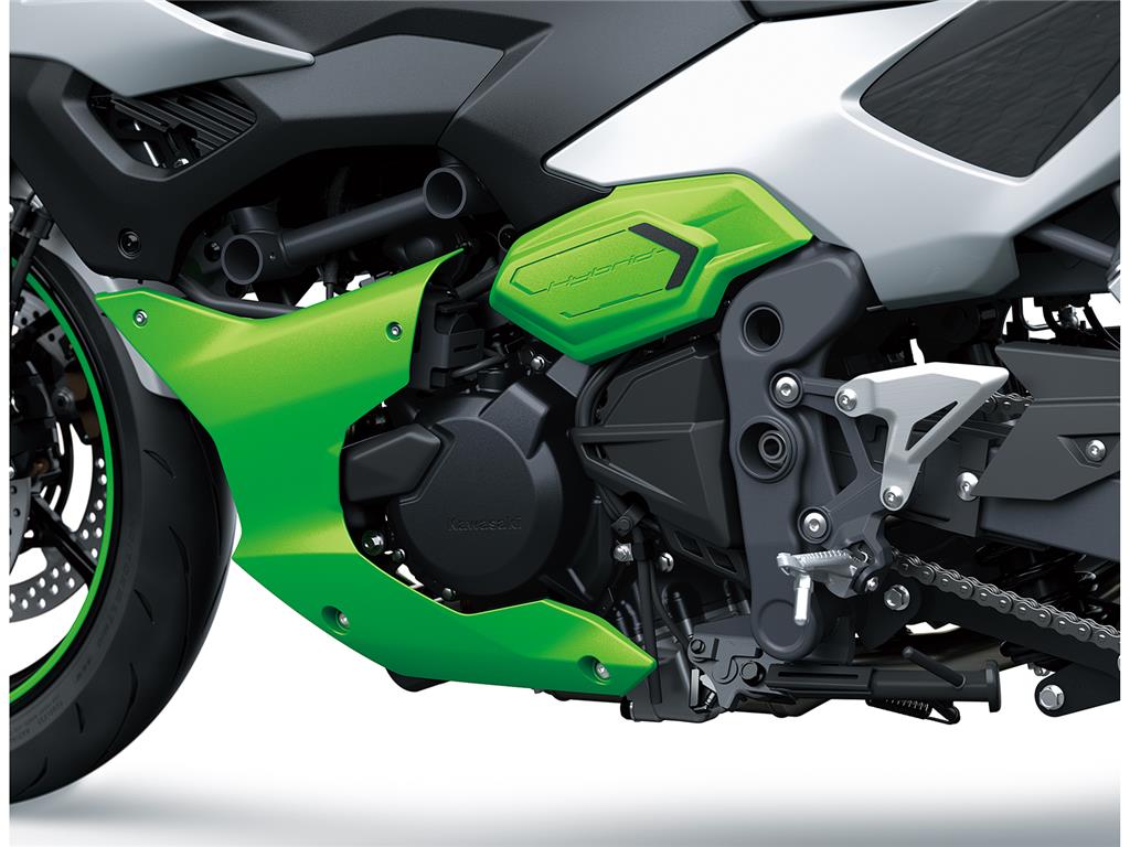 As a next-generation Supernaked model, the Z7 Hybrid combines aggressive Z styling with a clean, high-class image befitting the world’s first* strong hybrid motorcycles. Riders will delight in the care given to the rider interface, from the relaxed, sporty riding position to the full-colour TFT instrumentation with smartphone connectivity, and intuitive switchgear layout. *Mass production models (excluding scooters) from a major power sports manufacturer as of October 6, 2023, per Kawasaki Motors, Ltd. research.