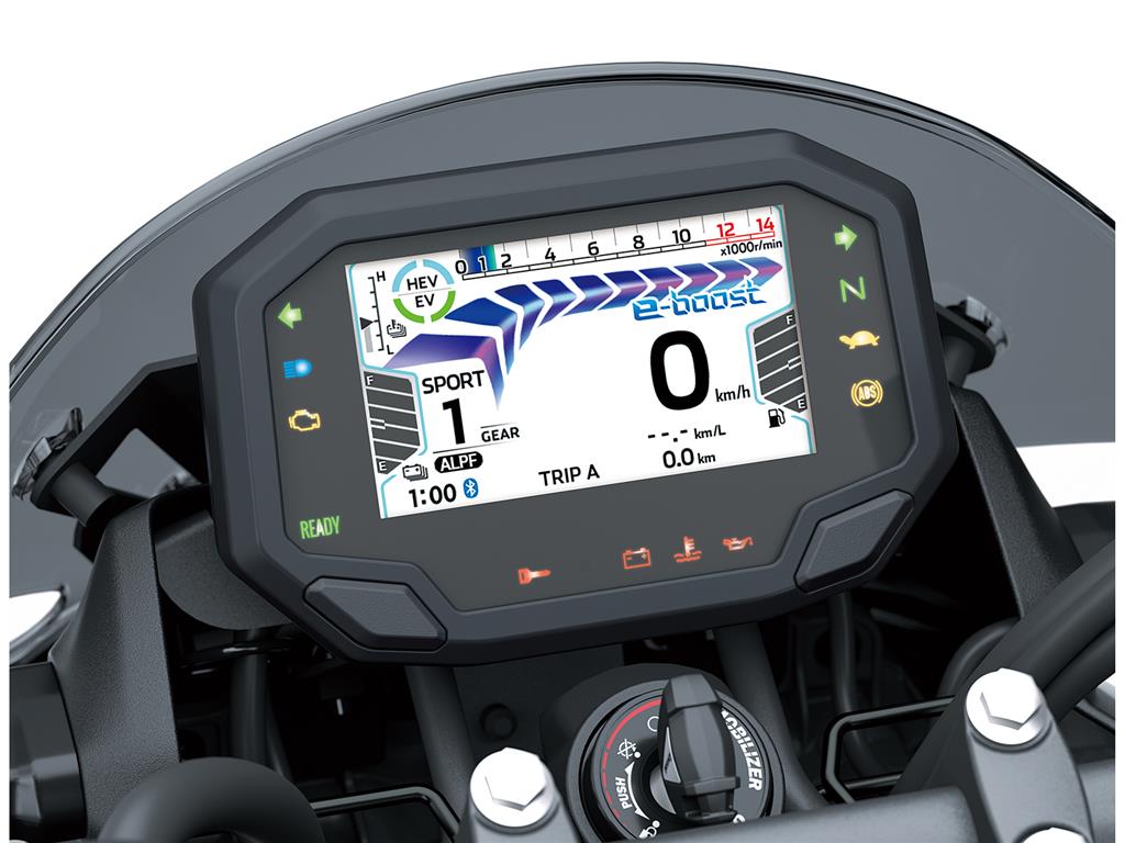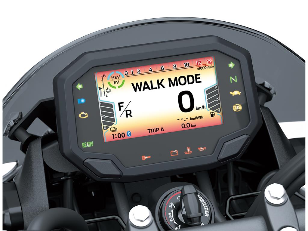 Like all Kawasaki motorcycles, the Z7 Hybrid was designed to be fun to ride and fun to control. In addition to the responsive, rider-friendly hybrid power unit and light, agile chassis, riders can look forward to new experiences like powerful acceleration with e-boost, and button-shifting backed by Kawasaki’s proprietary logic and unique electronically controlled transmission.
