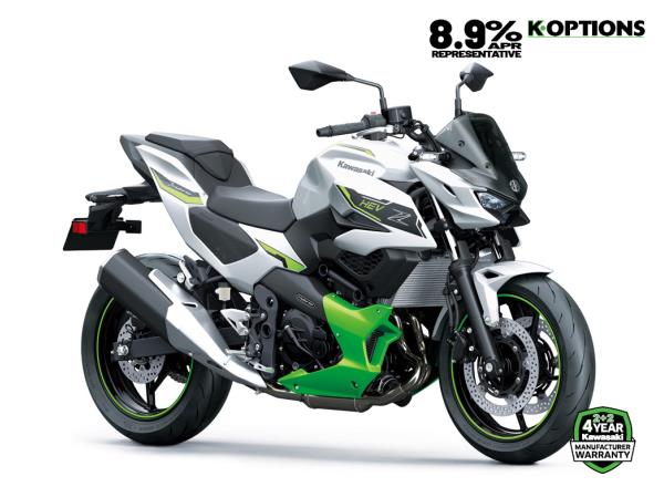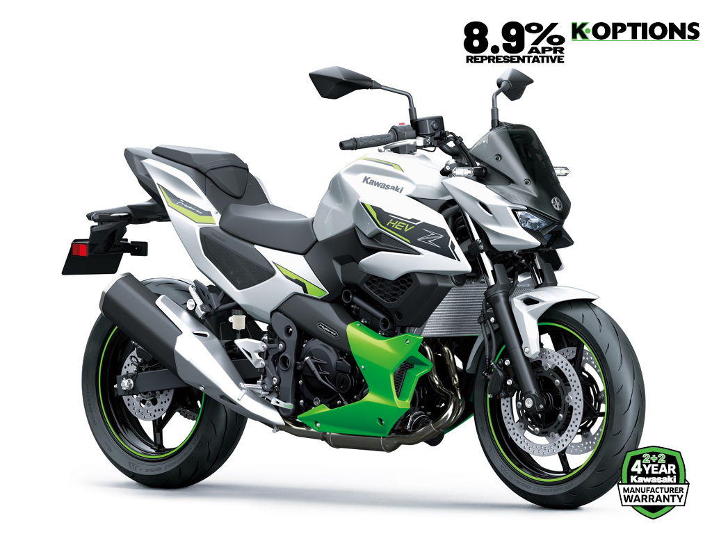 Silver and Lime Green with a semi-matte finish, the Z7 Hybrid’s colour & graphics contribute a fresh, futuristic image for Kawasaki’s HEV models.
