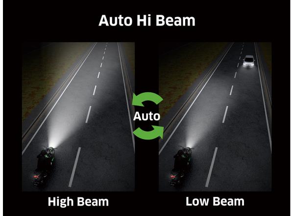 Using a camera sensor to assess the brightness of the lights of vehicles ahead, of streetlights, etc. AHB automatically turns the bike’s high beams on or off as necessary. For the system to function, the dimmer/passing switch must be set to high beam, the bike must be travelling above 20 km/h, and it must be dark. When the system has been engaged, the icon displayed on the instrument screen will show green.