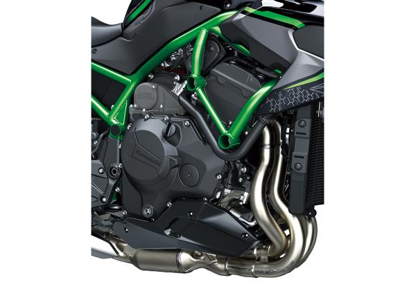 Able to harness the full power of the supercharged engine, the Z H2’s specially designed frame offers a combination of high-speed stability and light handing that facilitates control when riding in the city or on twisty roads – seemingly contrary characteristics. The compact frame, an ideal basis for the form of a naked model, has a high-level balance of stiffness and flexibility, allowing a wide range of riding situations to be tackled.