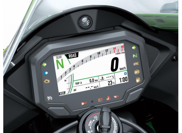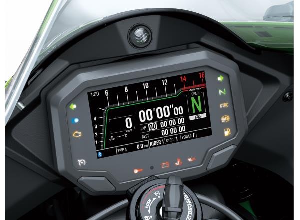 Kawasaki’s cruise control system allows a desired speed to be maintained with the simple press of a button. Once activated, the rider does not have to constantly apply the throttle. This reduces stress on the right hand when traveling long distances, enabling relaxed cruising and contributing to a high level of riding comfort.