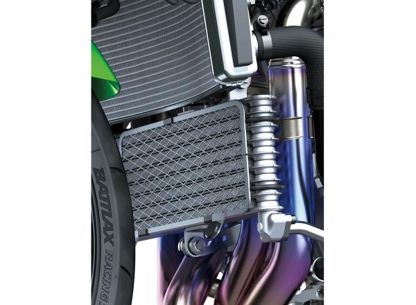 Based on feedback from Kawasaki’s WSB race machine, the new air-cooled oil cooler features an independent circuit – a design often seen on high performance models.