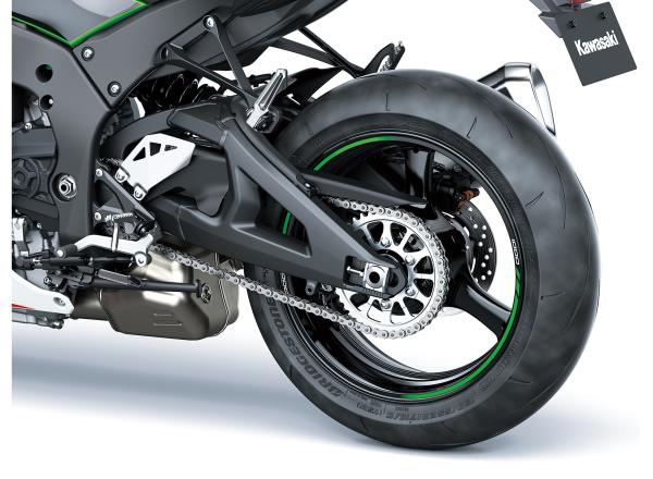 The Ninja ZX-10R’s gear ratios were idealised for circuit riding. A larger rear sprocket (39T >> 41T) and shorter ratios for 1st, 2nd and 3rd gears offer strong low-mid range acceleration for quicker corner exits, as well as quicker off-the-line acceleration for strong launches on the circuit.