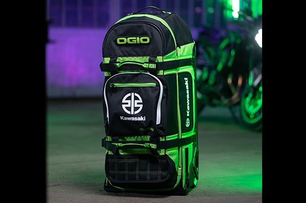 And for frequent flyers in the check-in queue, the Ogio trolley bag takes up to 50l. With its telescopic pull handle, integrated wheels and reinforced contact points, this subtle black bag with white Kawasaki logo is classy and practical in equal measure.