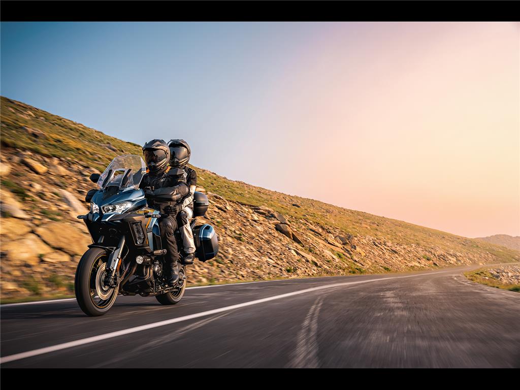 Not only is the Versys 1100 exciting to ride, but it also offers the comfort and carrying capacity to allow riders to ride long and far. A highly comfortable seat and good wind protection complement the relaxed riding position, making it easier to spend a long time in the saddle. Passenger comfort is also superb, making it easy to share the fun. Long-travel suspension capably handles a wide range of road conditions, adding to rider confidence, while on the SE model, electronic suspension with Skyhook Technology further contributes to ride comfort for both rider and passenger. A high payload can accommodate panniers and a top case simultaneously, and numerous accessories add to comfort and convenience – especially welcome on multi-day trips.