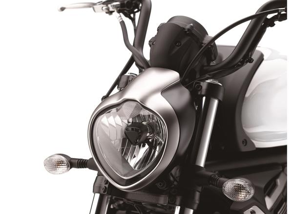Muffler located under the engine contributes to a low centre of gravity, and is tucked out of the way, making it easier to reach the ground when stopped. The muffler’s design conveys both power and style.