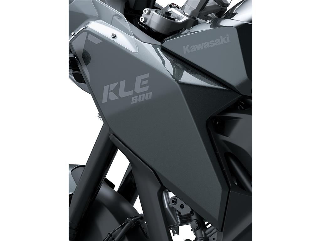 Distinctive rally-inspired styling sets Kawasaki’s new adventure machine apart. The KLE500 looks just as ready to get dirty on the trails as it is to cover a long highway journey in comfort. A blend of three stylistic aspects—an authentic rally-raid image, familiar street bike elements, and KX Motocross-inspired design touches—creates Kawasaki’s new adventure style.