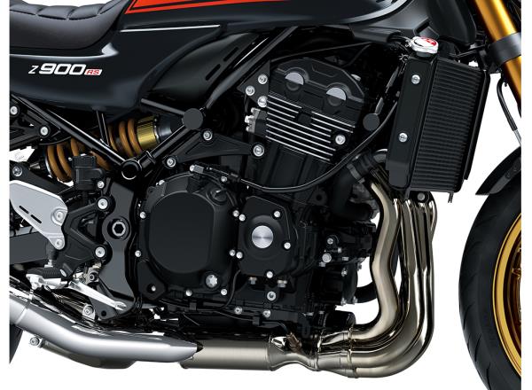 Stylish fins integrated into the cylinder head create the impression of an air-cooled engine and are further complemented by engine design cues inspired by the original Z1. The engine cover design is reminiscent of traditional naked models, and the use of die-cast aluminium for all covers adds a high-quality, premium finish.