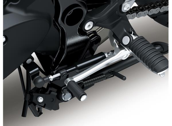 The Öhlins S46 rear shock features an aluminium body with single-tube construction, a large Ø 46 mm piston, and internal oil and gas chambers separated by a floating piston, resulting in a superior sense of grip and handling. Improved action from the Öhlins rear shock also contributes to a suppler ride feel. Unlike its aftermarket counterpart, the Öhlins rear shock prepared for Kawasaki’s Z models features a double-lipped dust seal that offers superior sealing performance.